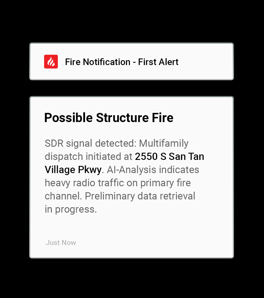 We combine raw radio traffic with deep property databases to deliver a complete incident profile directly to your device.